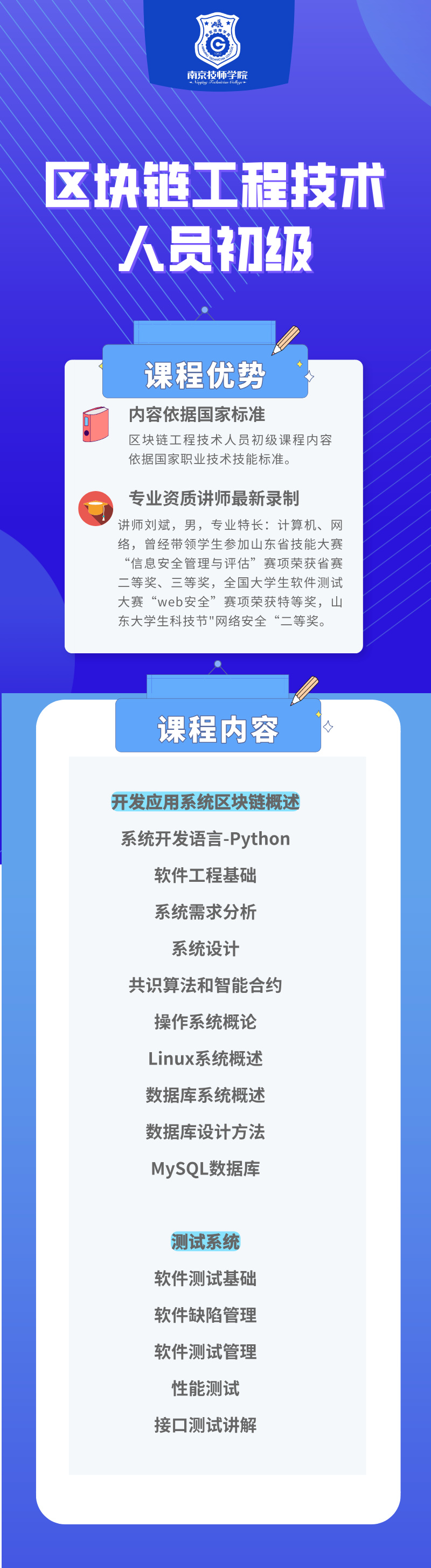 了解涵盖区块链概述、Python 开发语言、软件工程基础、系统分析与设计、共识算法和智能合约等核心知识,以及操作系统、Linux、数据库(含 MySQL)、软件测试全流程(含缺陷管理、性能与接口测试)等必备技能,助力构建区块链工程技术入门体系。
